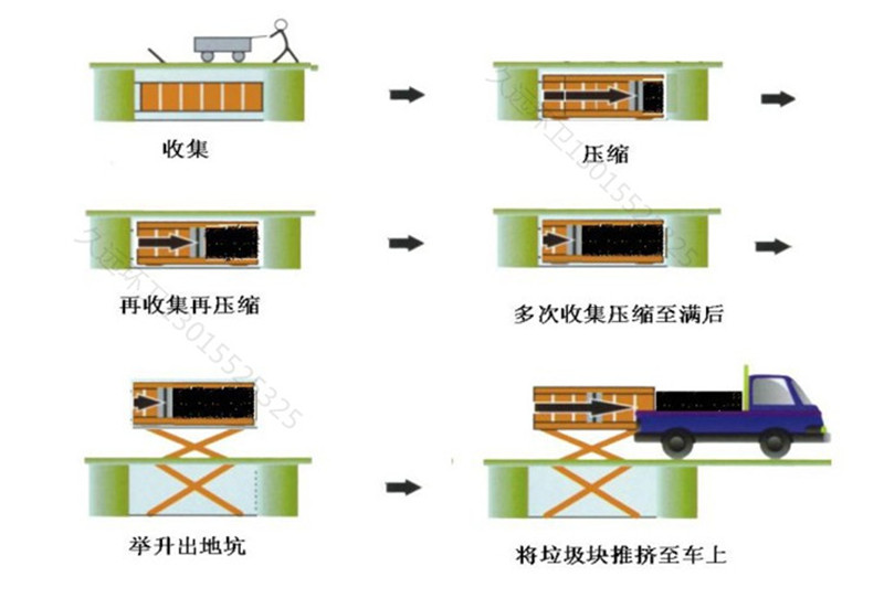 水平地埋式生活垃圾壓縮中轉設備是將垃圾的卸(出)料、壓縮、儲存集合在一起,整體落于地下,利用地下空間將垃圾密閉在箱體內,地面上無垃圾外露現(xiàn)象,壓縮垃圾產生的污水經排污管道直接流入污水井內,然后由污水泵排到城市污水管網(wǎng),徹底解決了垃圾在收集、儲存、裝運過程中的污染環(huán)境、作業(yè)效率低等問題。整個設計僅有上蓋板露出地面,上蓋板可與周圍環(huán)境協(xié)調裝飾,達到融為一體的效果,使城市面貌更加美觀。