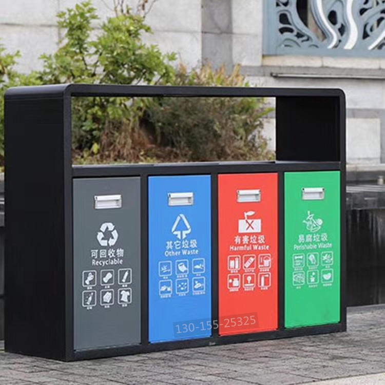 戶外四分類垃圾桶果皮箱 垃圾箱生產(chǎn)廠家 河南鄭州戶外垃圾桶價格 分類果皮箱批發(fā)13015525325